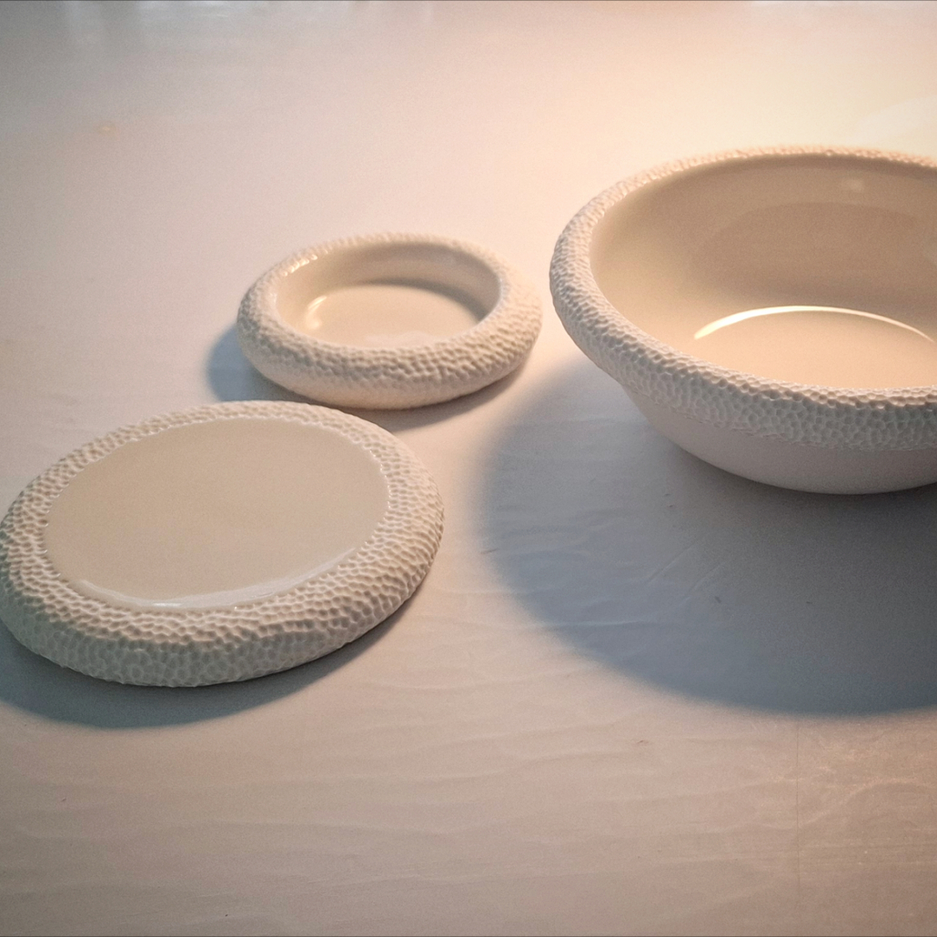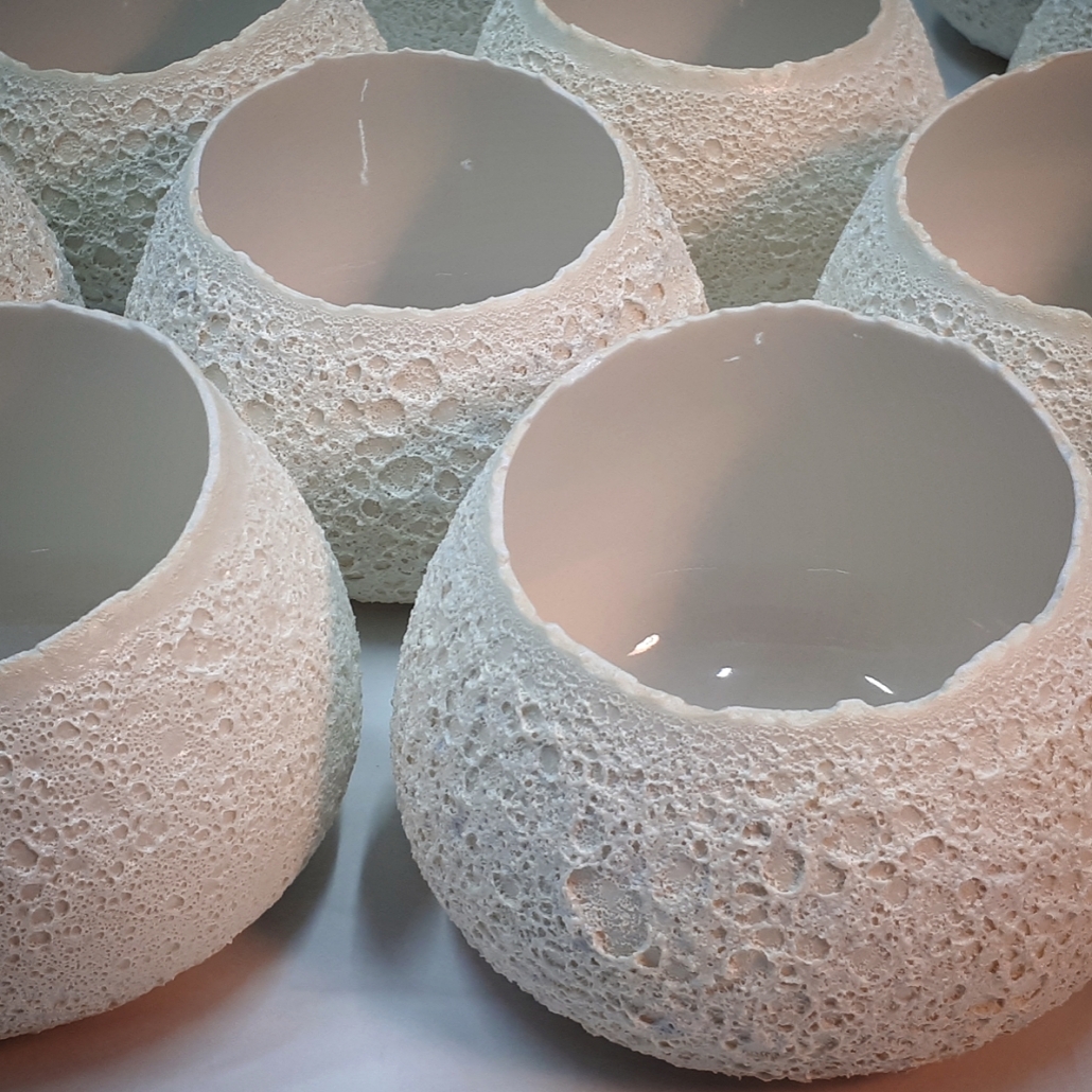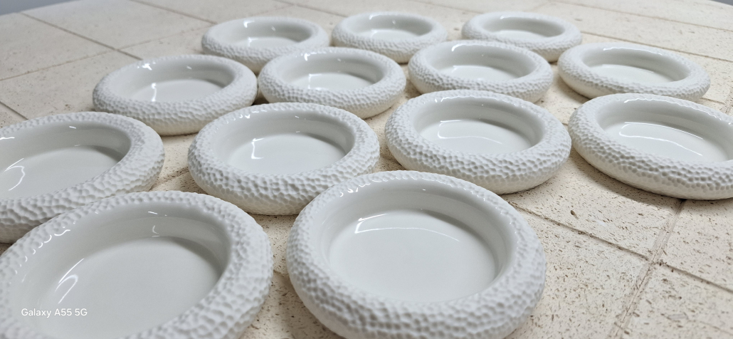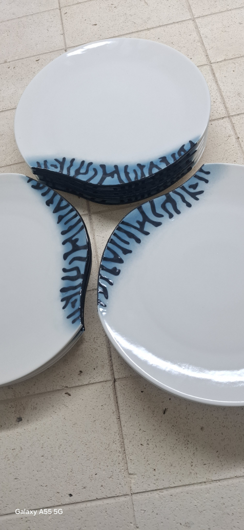 Le chef formule ses souhaits, ses besoins et me décrit les formes qu’il aimerait, les dimensions, les couleurs ou décors les plus adaptés à sa cuisine. Toutes mes pièces sont modifiables et adaptables selon les projets. Nous prenons le temps de réfléchir ensemble. Nous pouvons également créer des pièces spécifiques à des plats ou au style du restaurant. Dans ce cas, j’élabore des prototypes que je montre au fur et à mesure des avancées de mes recherches.